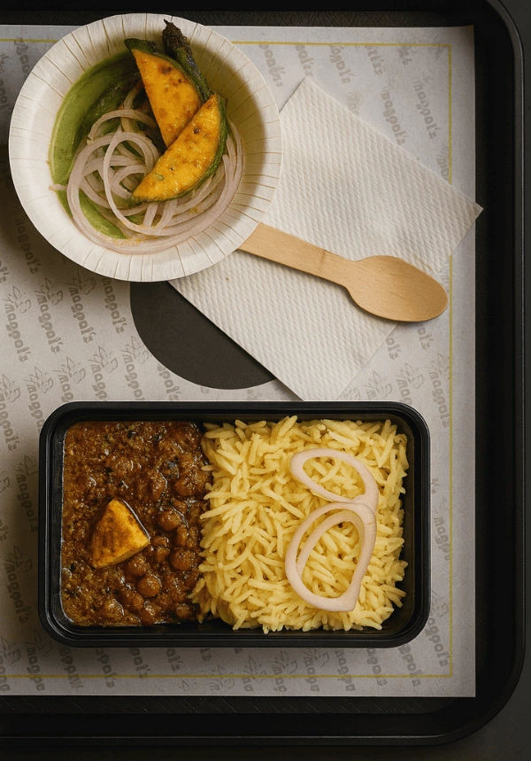 Spicy Nagpal chole paired with fluffy basmati rice